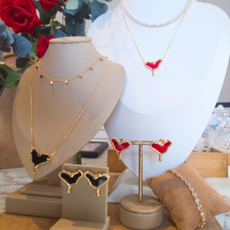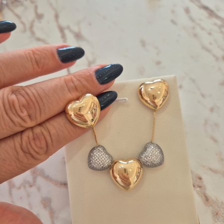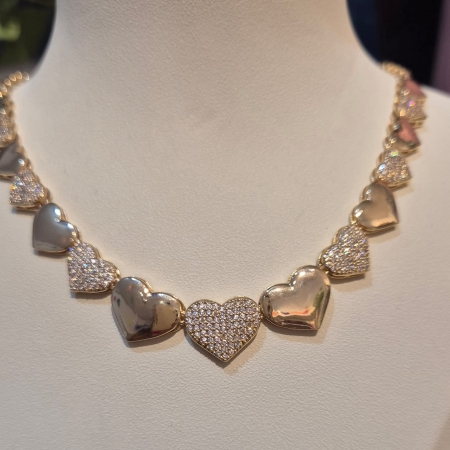• COLAR DE CORAÇÕES CRAVEJADOS E LISOS