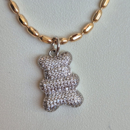 • COLAR RIVIERA RÓDIO BRANCO 35CM + PINGENTE URSINHO CRAVEJADO