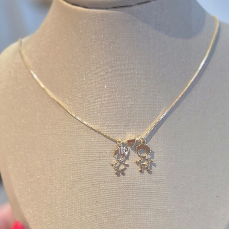 • Colar Menininho e Menininha com Coração – Banho de Ouro