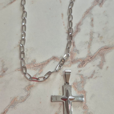 • COLAR EM RÓDIO BRANCO COM PINGENTE CRUCIFIXO