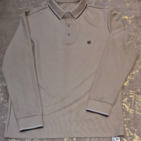 • CAMISETA MASCULINA OSCAR – BEGE COM LISTRAS NOS PUNHOS