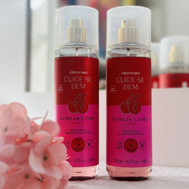 Uma fragrância leve, adocicada e simplesmente irresistível. O Body Splash Cereja Livre combina o toque doce da cereja com uma sensação de frescor que perfuma e revigora sua pele ao longo do dia. Ideal para quem ama se sentir cheirosa, leve e com aquela energia gostosa de autocuidado.