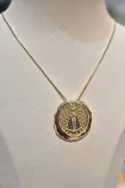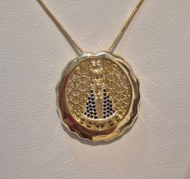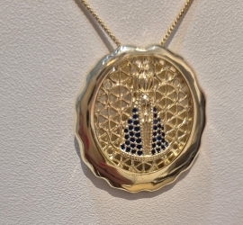 Colar com medalha de Nossa Senhora e corrente veneziana no banho dourado. Um acessório delicado, com significado especial e brilho elegante.