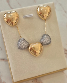 Um conjunto elegante, versátil e cheio de personalidade. As peças combinam o acabamento liso com o brilho sofisticado das zircônias cravejadas, criando um equilíbrio perfeito entre o clássico e o moderno. Com banho dourado, é ideal para quem busca acessórios atemporais que elevam qualquer produção.